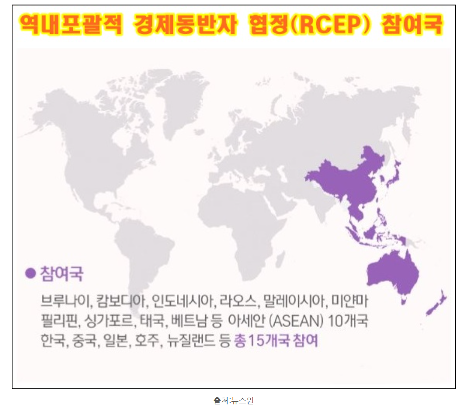 얼마 전 뉴스에 보도된 Rcep(역내 포괄적 경제 동반적 협정)에 한국과 일본이 나란히!